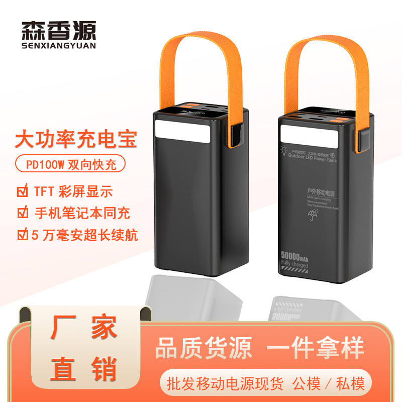 Daya tinggi luar ruangan PD65w/100w daya pengisian daya laptop dua arah daya cepat 50000mAh daya luar