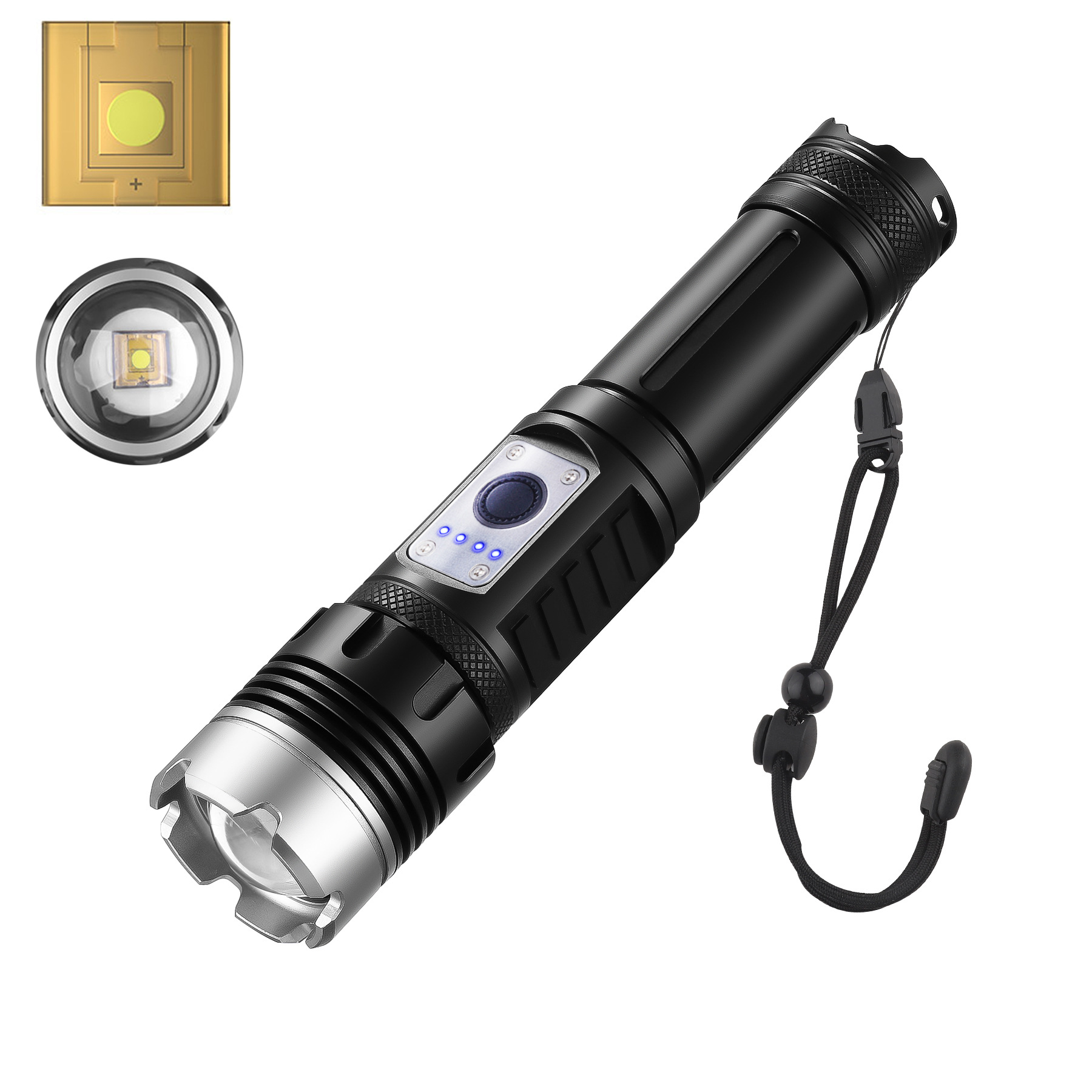 Senter led terang P70 lintas batas, lampu senter led tampilan daya luar ruangan pengisian daya USB P50 dengan pengisian