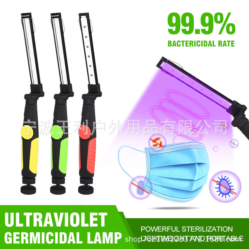 UVC lampu disinfeksi ponsel, cahaya ungu sterilisasi genggam tangan USB dapat diisi ulang dapat dilipat lampu kerja UV