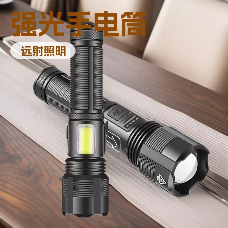 Senter portabel USB zoom XHP50 zoom cahaya kuat luar ruangan pengisian daya tipe-c tampilan daya gesper pena baru lintas batas