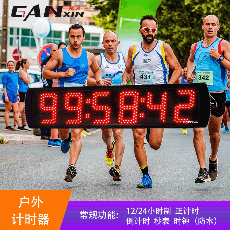 Ganxin jam pengukur elektronik LED, jam pengukur waktu balapan, ukuran besar, maraton, layar besar, tahan air