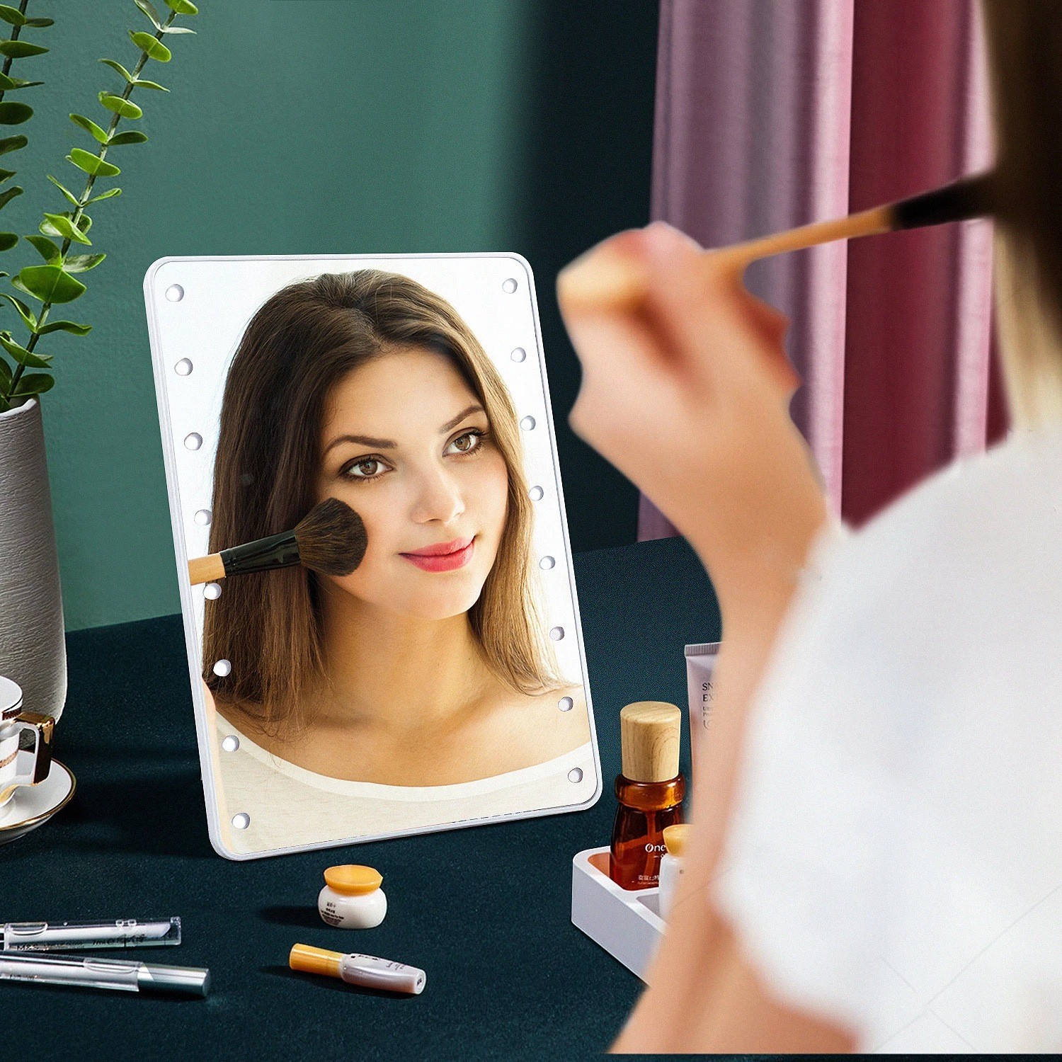 Lampu LED cermin rias portabel, kaca rias pembersihan dengan lampu layar sentuh saklar persegi untuk perjalanan asrama