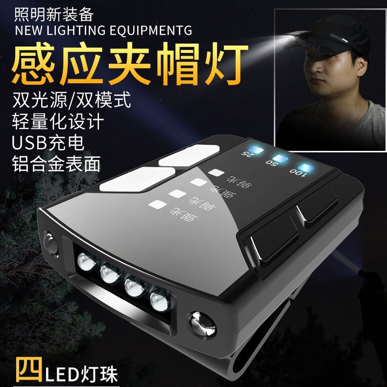 Lampu Jepit Topi Induksi Gesture Cahaya Kuat LED Baru Lintas Batas USB Isi Ulang Mini Portabel Lampu Luar Ruangan Multi guna Bagian Pinggiran Topi