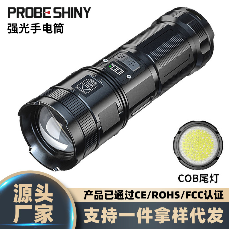 Senter lampu multifungsi lintas batas baterai litium kapasitas besar bawaan dengan output luar ruangan senter P90 sangat terang