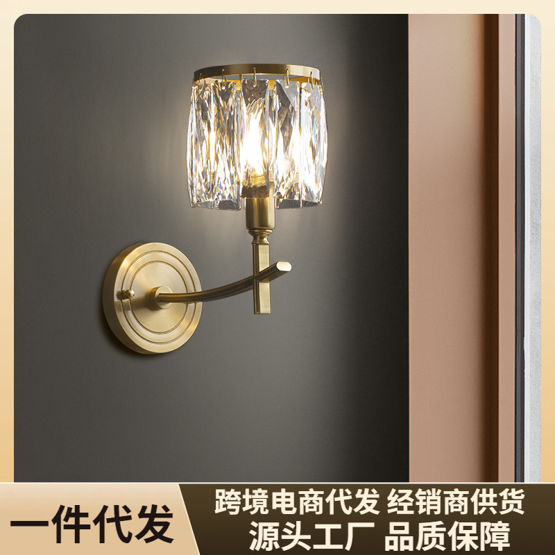 Lampu dinding kristal Post-modern, lampu dekorasi latar belakang TV, kamar tidur, lampu samping tempat tidur, lampu dinding kristal mewah