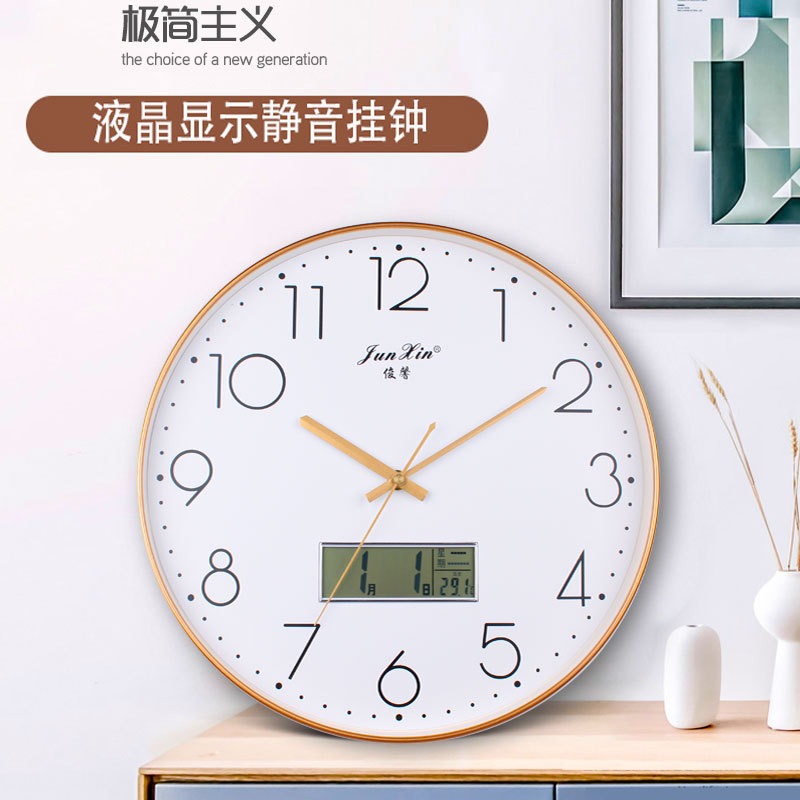 Jam gantung LCD kreatif ruang tamu, jam tangan gantung rumah tangga sederhana modern, jam quartz bulat bisu kamar tidur, grosir