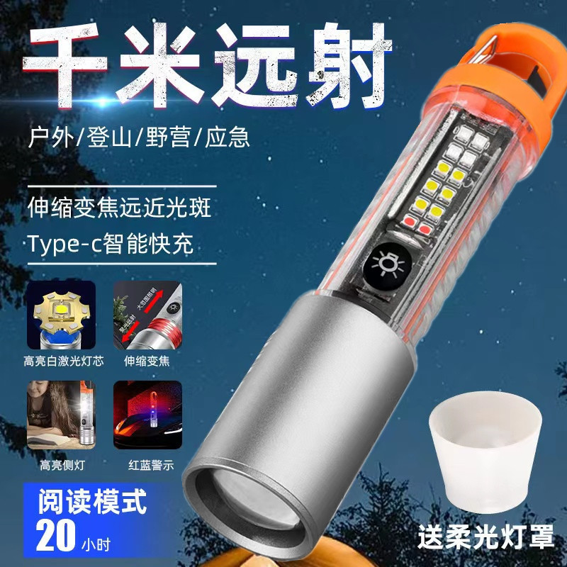 Senter laser Putih lintas batas, tampilan sorot zoom jarak jauh dapat diisi ulang dengan lampu tangan luar ruangan