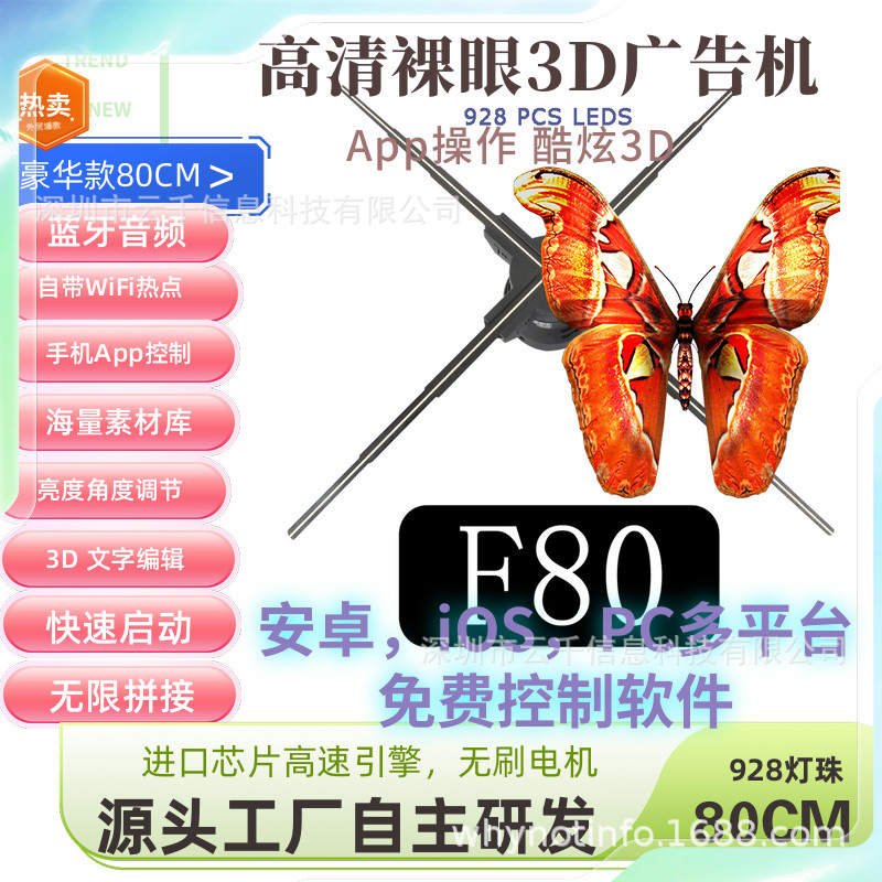 Kipas holografik 3d, mesin iklan 3d mata telanjang led HD 70 80 85 100cm