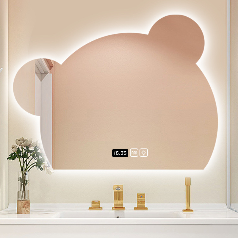 Cermin Beruang Kecil Selebriti Internet Lucu Lampu LED Cermin Rias Bentuk Unik Layar Sentuh Cermin Pintar Kreatif Kaca Kamar Mandi Gantung Dinding