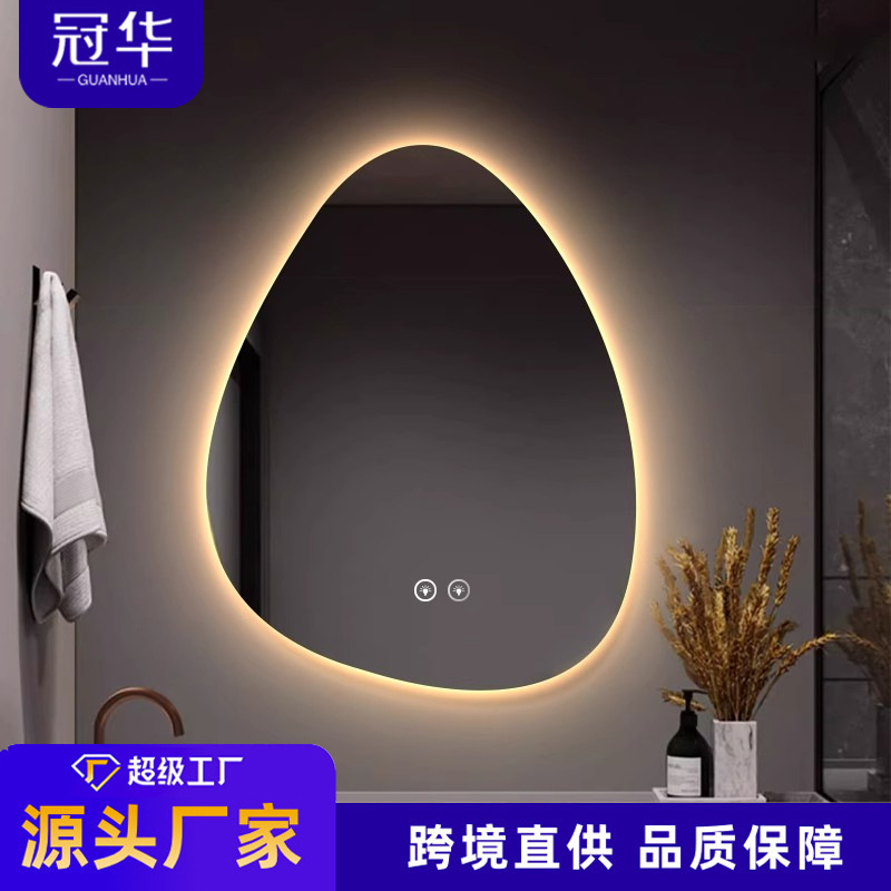 Cermin Kamar Mandi Cerdas Bentuk Alien Cermin Rias Kamar Mandi Tipe Tetesan Air Cermin Kamar Mandi Hotel Dengan Lampu Cermin Rias Layar Sentuh LED