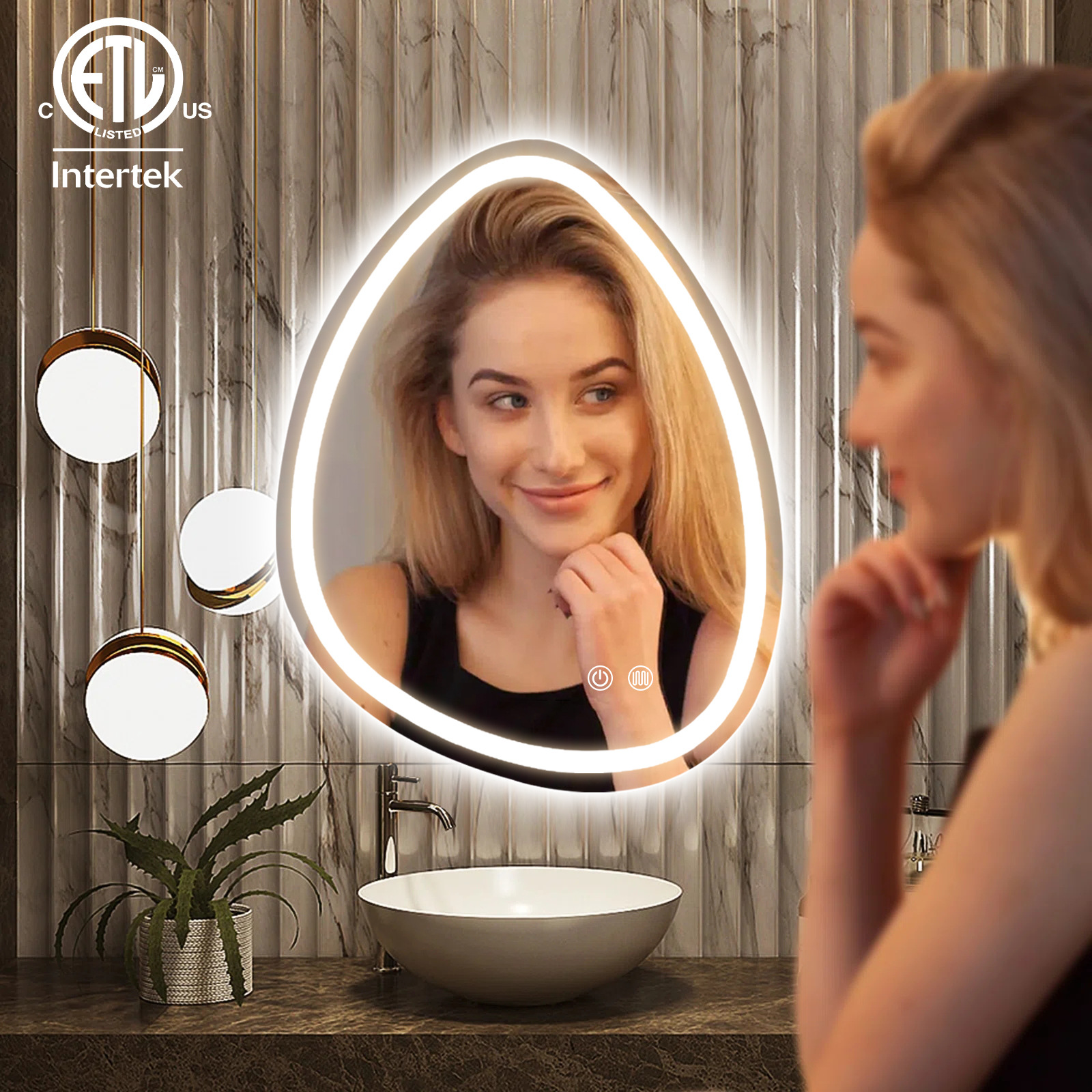 Cermin kamar mandi bentuk pintar, LED kreatif dengan lampu layar sentuh gantungan dinding kamar mandi