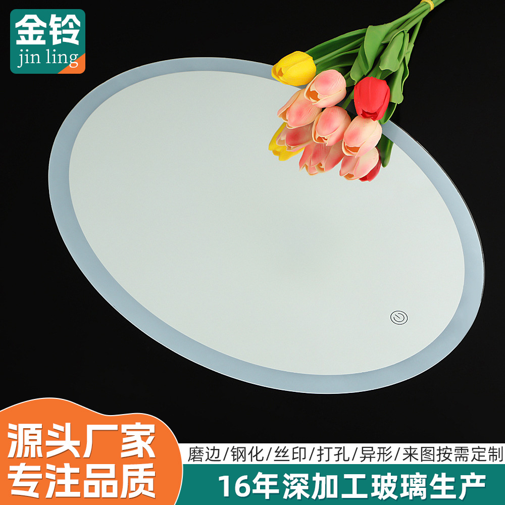Grosir Pabrik cermin pintar kamar mandi oval layar sentuh berbentuk spesial cermin kamar mandi lampu LED cermin kosmetik penjualan langsung