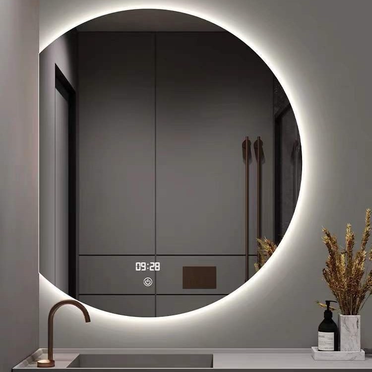 Layar sentuh led kamar mandi cerdas, cermin kamar mandi cerdas, rias wajah anti-kabut, layar sentuh HD, cermin bulat, pemangkasan bentuk khusus