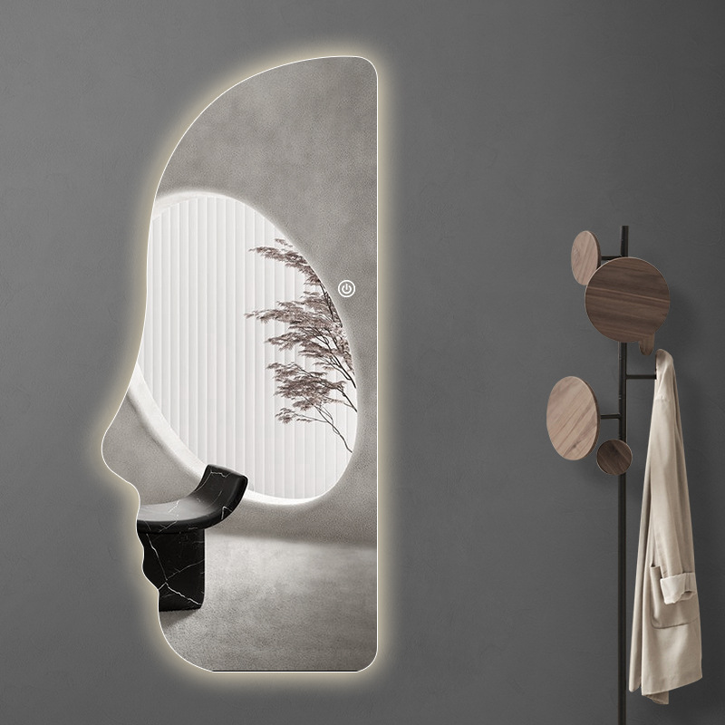 Cermin rias led bercahaya bentuk khusus, cermin rias badan penuh untuk pemasangan di dinding, kaca wajah seni dekorasi kamar tidur