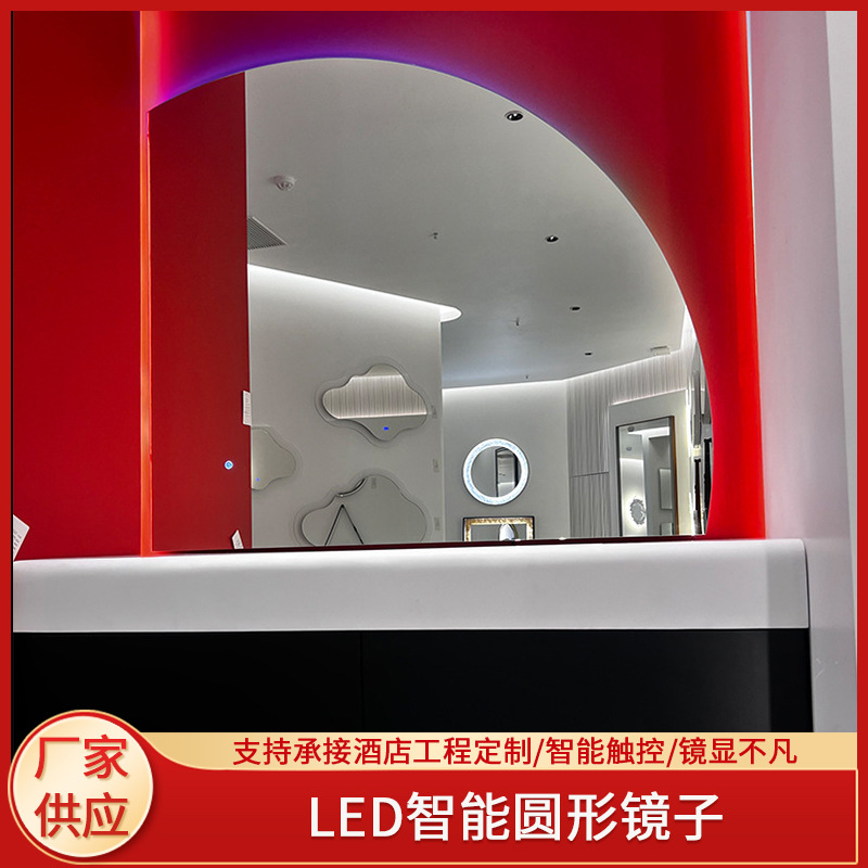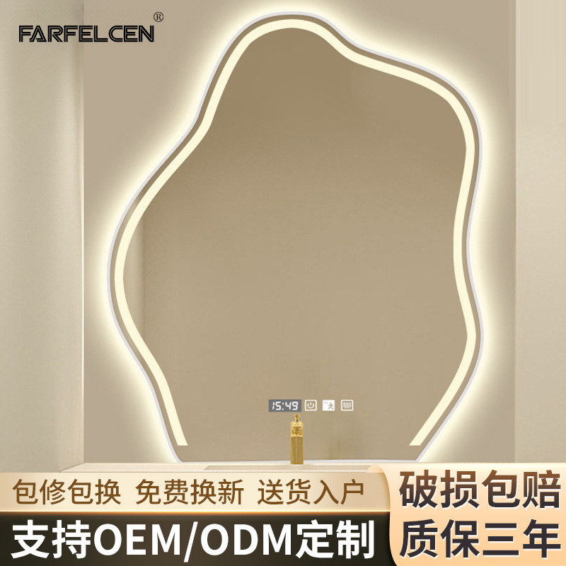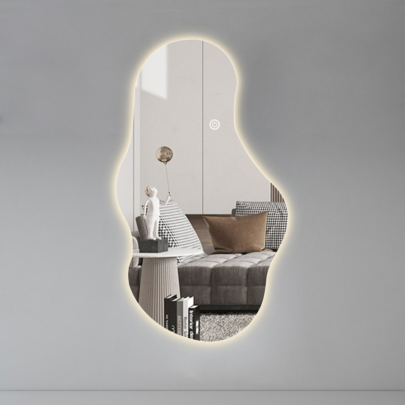 Cermin rias cerdas led tanpa bingkai, cermin layar sentuh tahan ledakan HD untuk rumah kamar tidur bentuk khusus