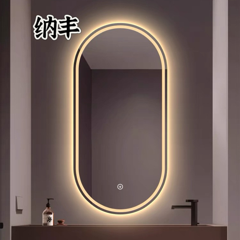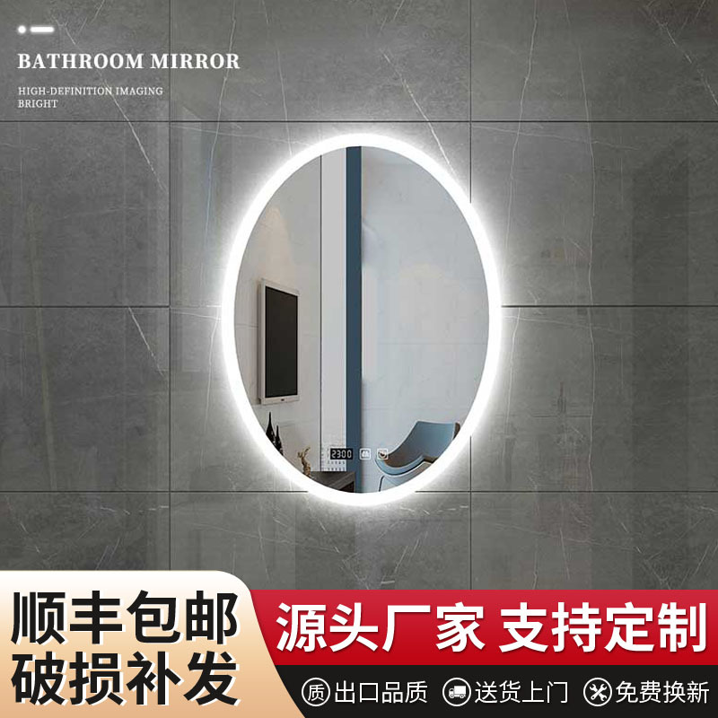 Smart oval berbentuk LED cermin kamar mandi anti-kabut toilet gantungan dinding toilet makeup layar sentuh dengan lampu