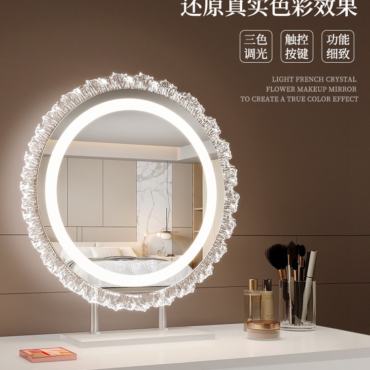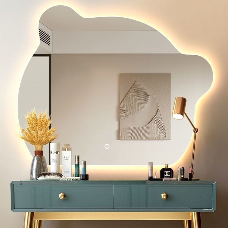Meja rias led cermin rias, lampu pintar led awan gaya ins kamar mandi desktop tidak teratur dengan jaring lampu cermin merah