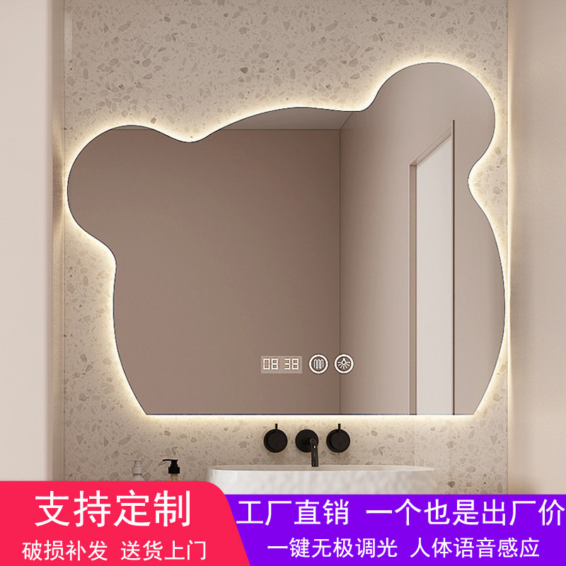 Cermin Beruang Kecil Selebriti Internet Lucu Lampu LED Cermin Rias Bentuk Unik Layar Sentuh Cermin Pintar Kreatif Kaca Kamar Mandi Gantung Dinding