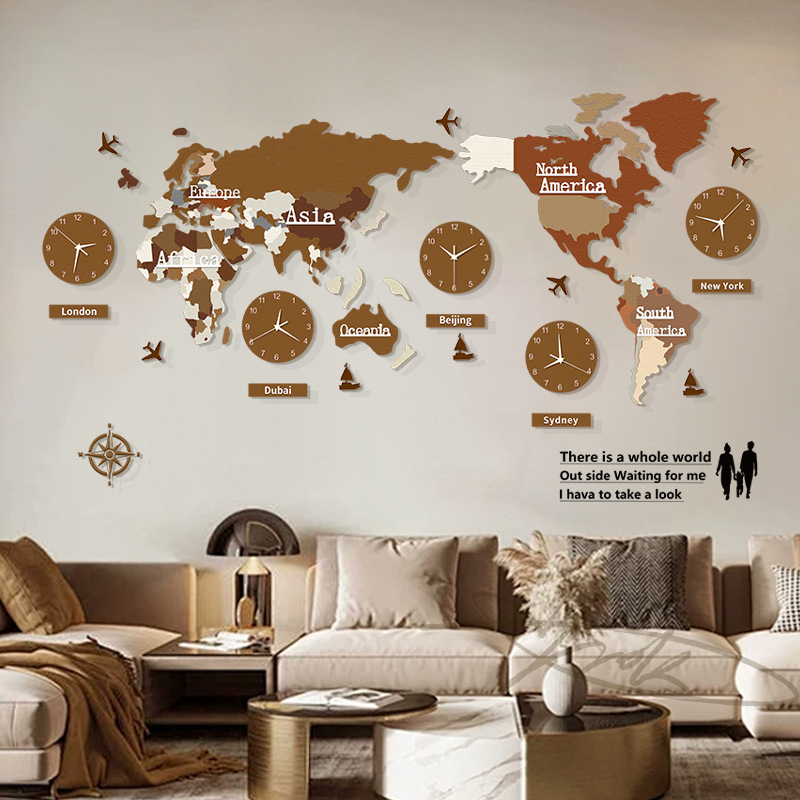 Peta Dunia Jam Dinding Warna Kayu Asli Jam Tangan Gantung Sederhana Modern Rumah Tangga Ruang Tamu Dekorasi Dinding Gantung Modis Gaya Eropa