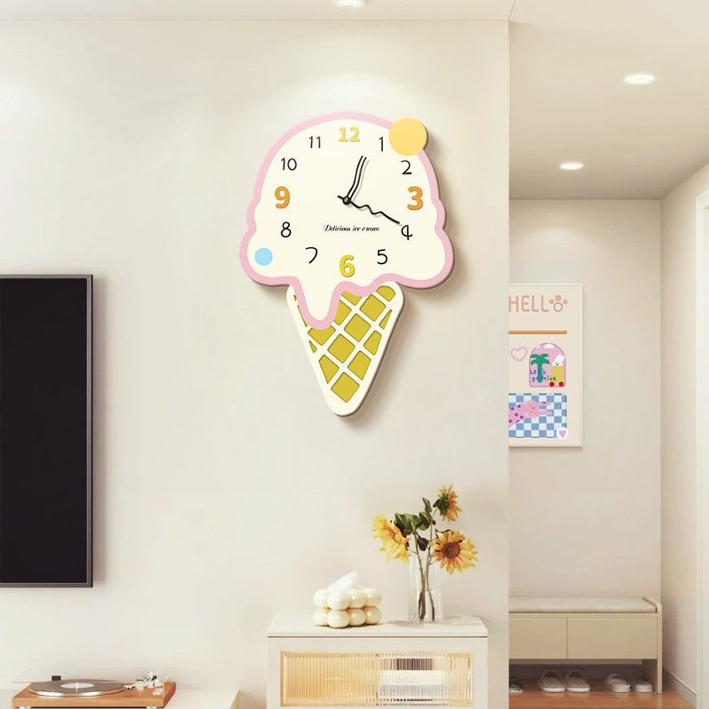 Jam Dinding Jam Kreatif Es Krim 2025 Jam Gantung Gantung Senyap Rumah Tangga Ruang Tamu Model Baru Jam Dinding Gantung Sederhana Rasa Premium