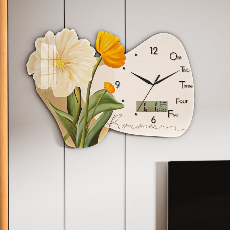Jam Artistik Bunga Kartun Kreatif Sederhana Jam Dinding Senyap Ruang Makan Ruang Tamu Jam Dinding Toko Bunga Selebriti Internet Jam Lucu Instagram