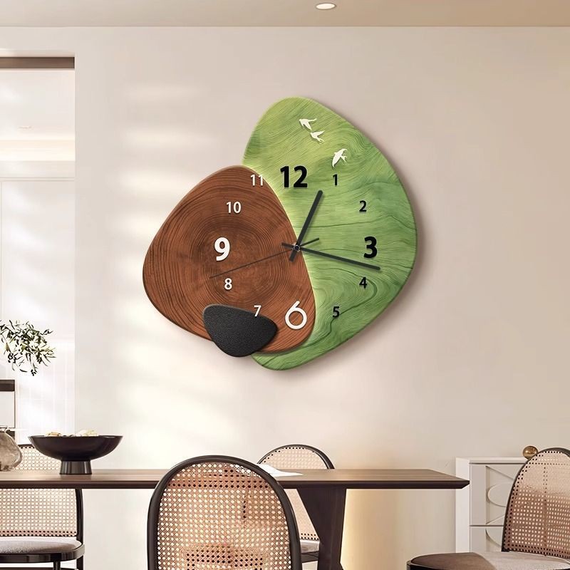 Ginkgo biloba dengan jam tangan dan jam gantung lukisan dekoratif ruang makan sederhana jam dinding ruang tamu TV kreatif jam dinding latar belakang sofa