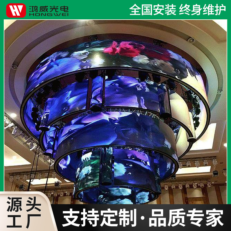 Layar LED bentuk khusus fleksibel layar penuh warna lembut bar pameran aula bergulir silinder kreatif layar berbentuk khusus LED layar berbentuk khusus