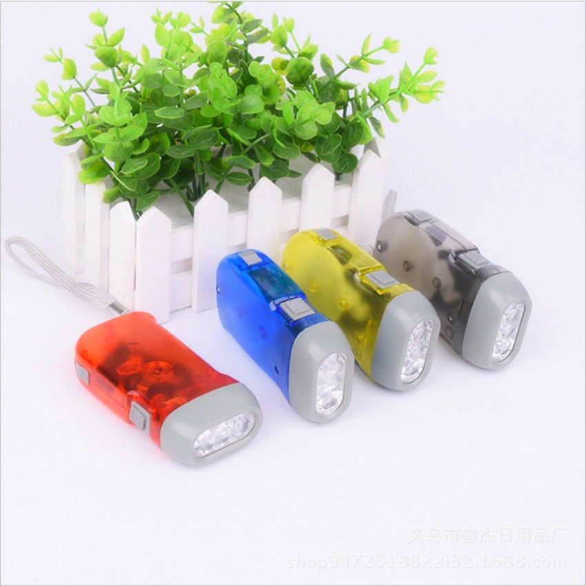 Senter portabel darurat luar ruangan 3LED dengan penggerak tangan dan engkol, dapat dicetak logo sesuai pesanan