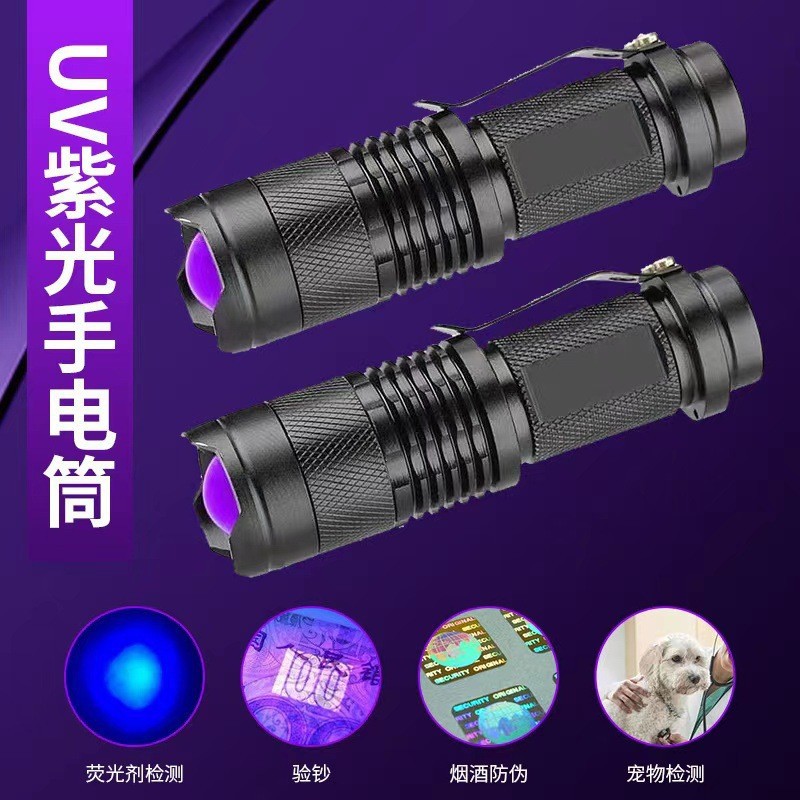 Lampu UV ungu senter 365NM aluminium Aloi deteksi uang neon Senter UV lampu kalajengking lumut kucing lampu ungu