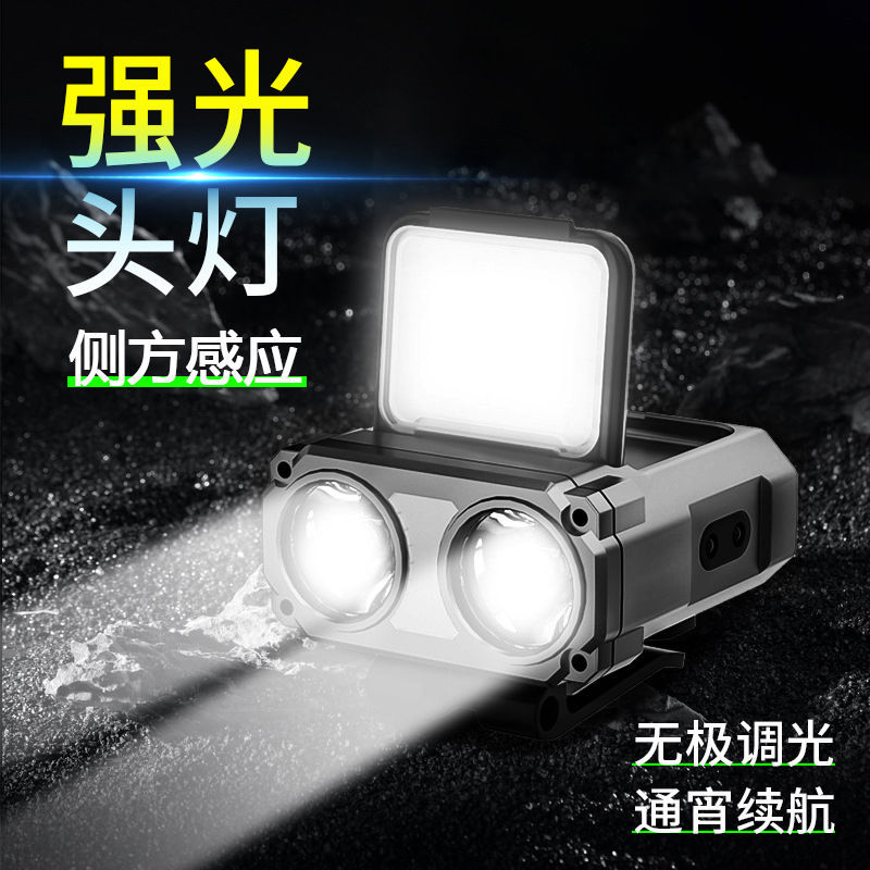 Lampu depan berkendara lintas batas, senter sensor kerja COB lampu depan cahaya kuat pencahayaan luar ruangan lampu memancing malam