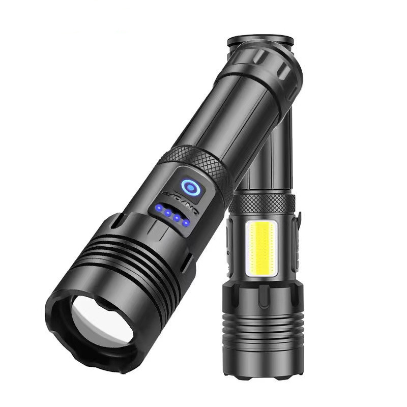 Senter khusus lintas batas cahaya kuat luar ruangan lampu sorot tampilan digital tampilan daya tahan air fokus dapat ditarik 90 senter 50