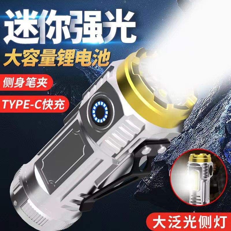 Lampu senter led anak-anak, cahaya kuat dapat diisi ulang jarak jauh luar ruangan rumah tangga kecil portabel kecil tahan lama
