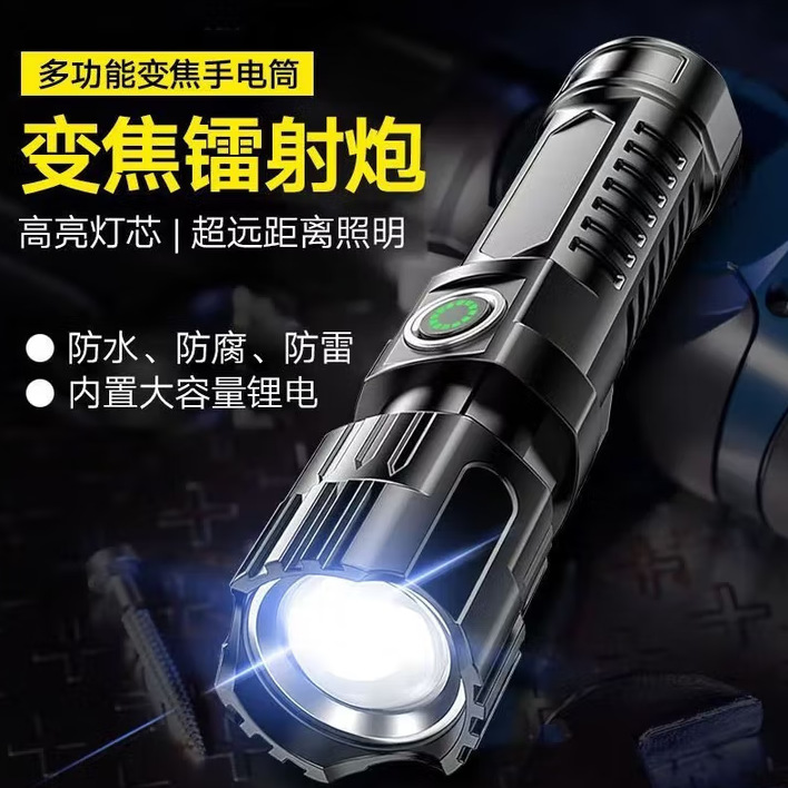 Senter fokus cahaya kuat ABS pengambilan jarak jauh portabel isi ulang lintas batas senter LED mini luar ruangan zoom multi-fungsi
