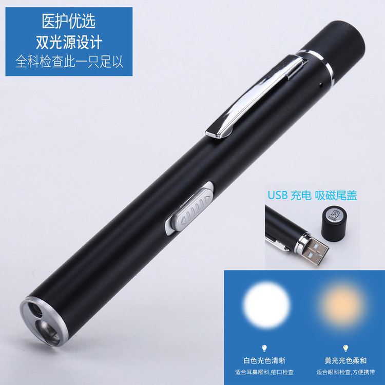 Senter isi ulang pena murid cahaya kuning cahaya putih sumber cahaya ganda Lampu mulut led baja tahan karat pemeriksaan pagi perawat
