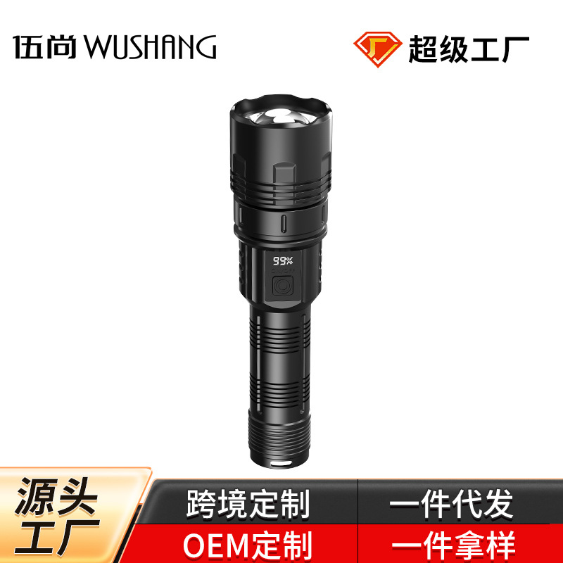 Senter khusus lintas batas cahaya kuat luar ruangan lampu sorot tampilan digital tampilan daya tahan air fokus dapat ditarik 90 senter 50