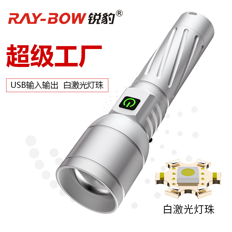 Laser putih macan tutul, cahaya kuat super terang tembakan jauh super kuat pengisian daya tinggi input dan output USB