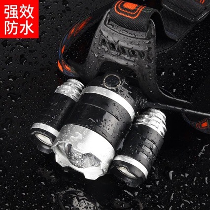 Lampu utama LED 3 kepala, lampu pencahayaan luar ruangan, pengisian super terang, lampu depan dipasang di kepala, dapat diisi ulang daya tinggi, tembakan jauh, super panjang