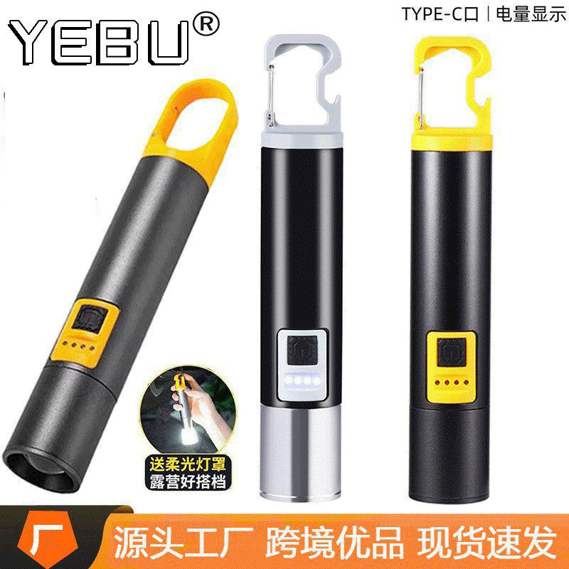 Senter lampu LED kuat LED laris, Senter tipe-c mengisi daya ledakan tembakan panjang, lampu kerja pengisian harta karun paduan aluminium