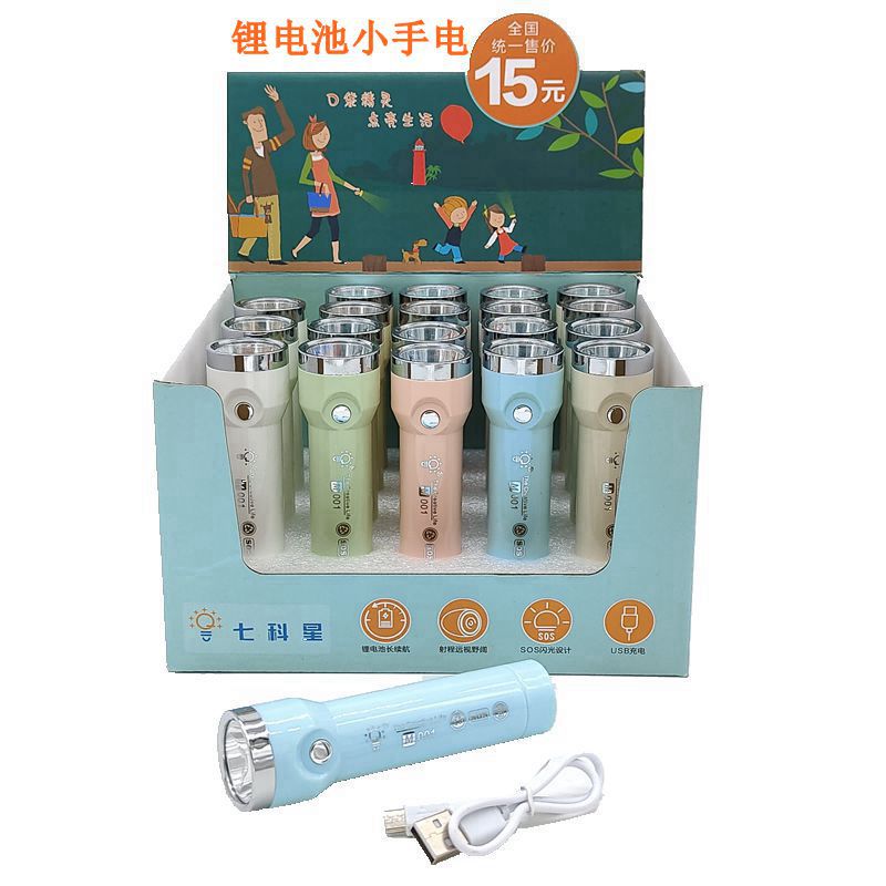 Kangming LED Senter Cahaya Kuat Mini Isi Ulang Siswa Luar Ruangan Portabel Rumah Tangga Panjang Rambut Grosir
