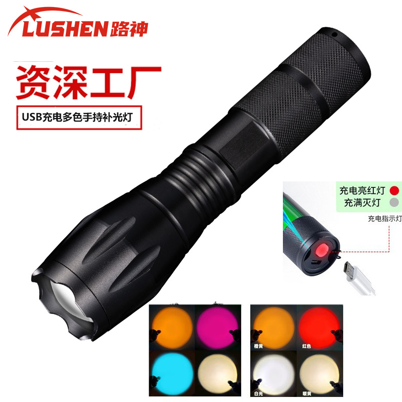 Lampu senter isi ulang daya pena sumber cahaya ganda lintas batas lampu bundar Suster arah