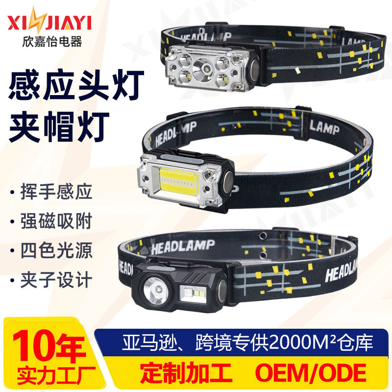 Lampu depan induksi ringan isi daya USB, lampu memancing malam hari, lampu depan LED sumber cahaya ganda penggunaan ganda