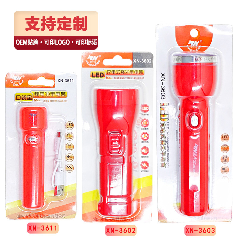 Senter merah pernikahan meriah Rumah Tangga LED Cahaya kuat isi ulang pegangan tangan lampu kecil pabrik grosir