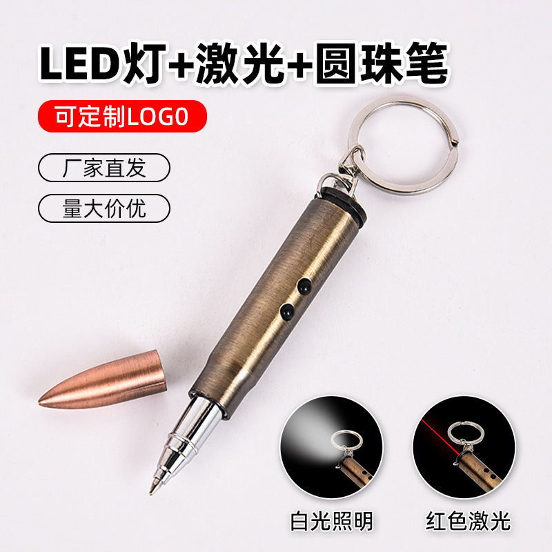 Diskon besar peluru laser cahaya peluru mini menulis pena peluru lampu LED gantungan kunci 907