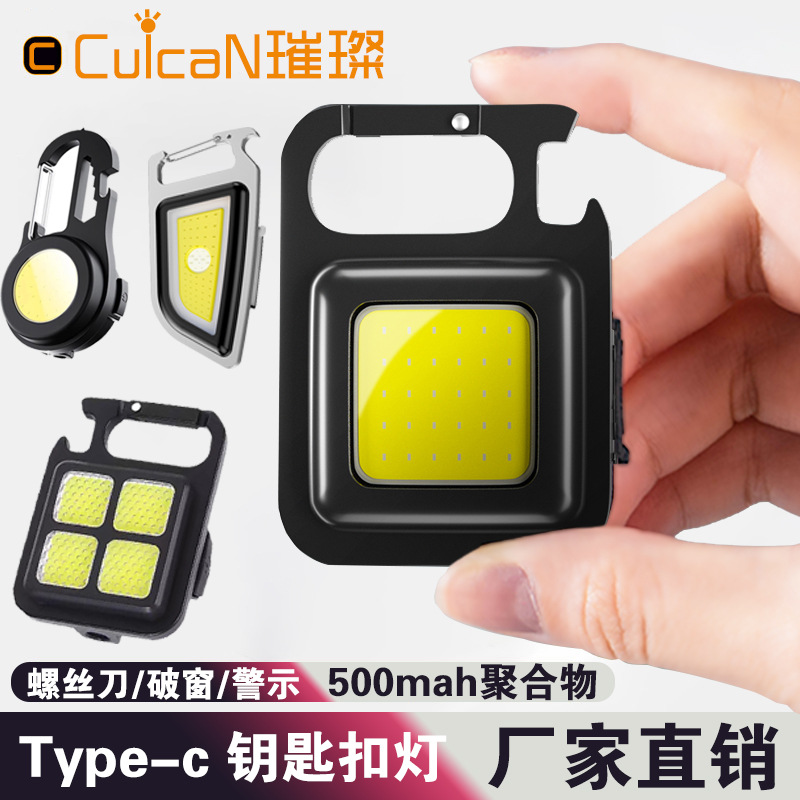 Senter magnetik portabel isi ulang daya, Gantungan Kunci lampu led Mini lintas batas, Senter peringatan portabel