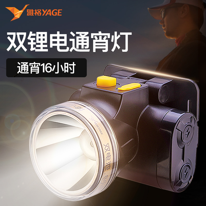 Yage YG-U105 lampu semua malam (tipe baterai ganda) lampu depan isi ulang lithium berkemah dipasang di kepala