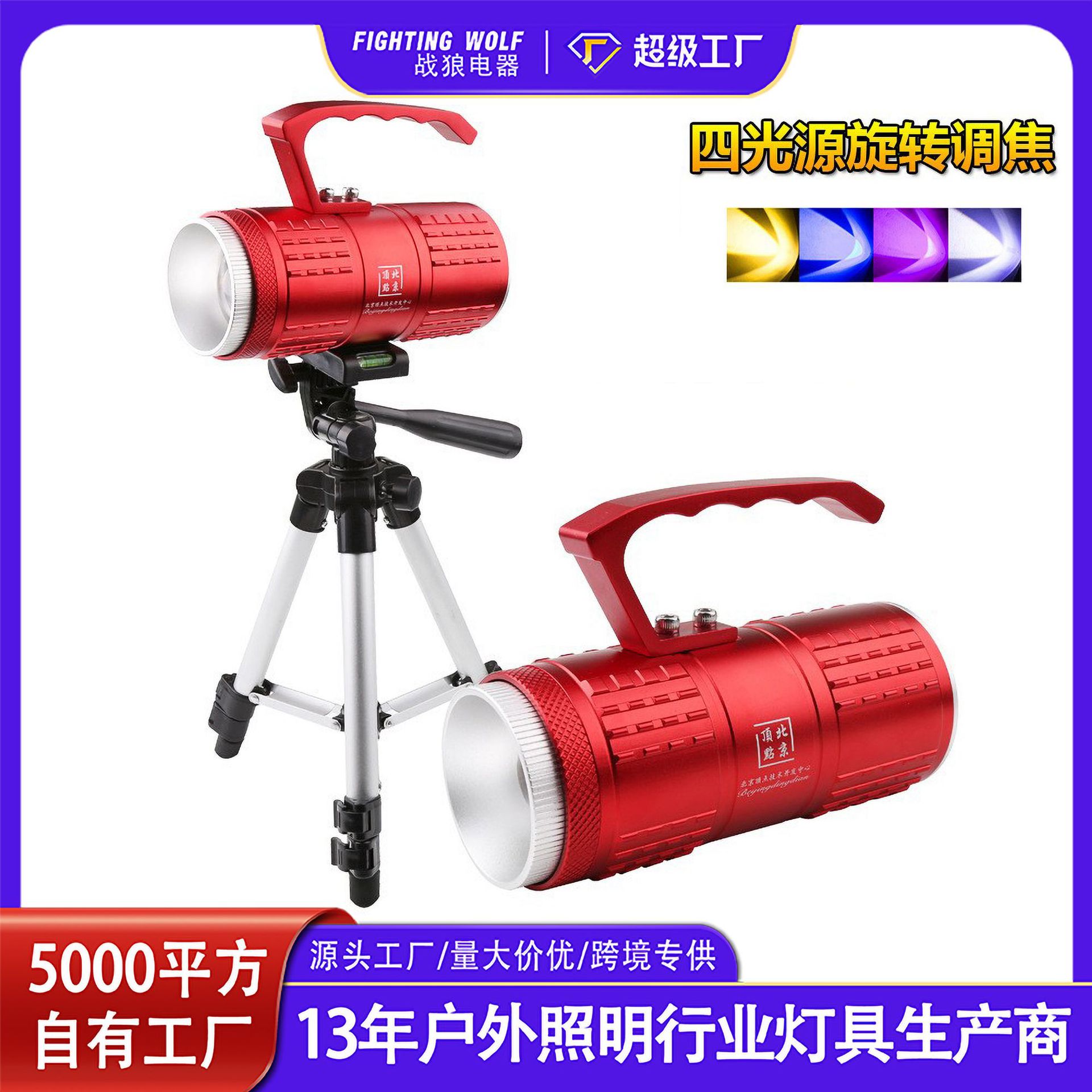 Lampu memancing malam daya tinggi, lampu memancing T6 inti biru putih kuning ungu 4 sumber cahaya berputar probe tembakan jauh portabel