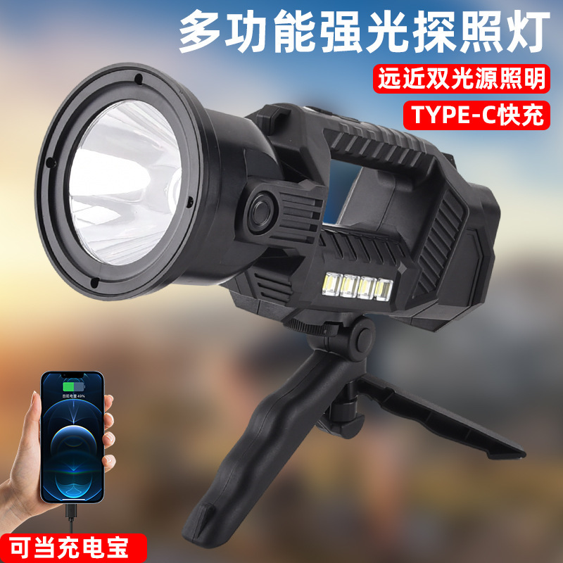 Lampu sorot LED lintas batas lampu kuat dapat diisi ulang petualangan lampu berkemah luar ruangan patroli daya tinggi lampu sorot darurat portabel