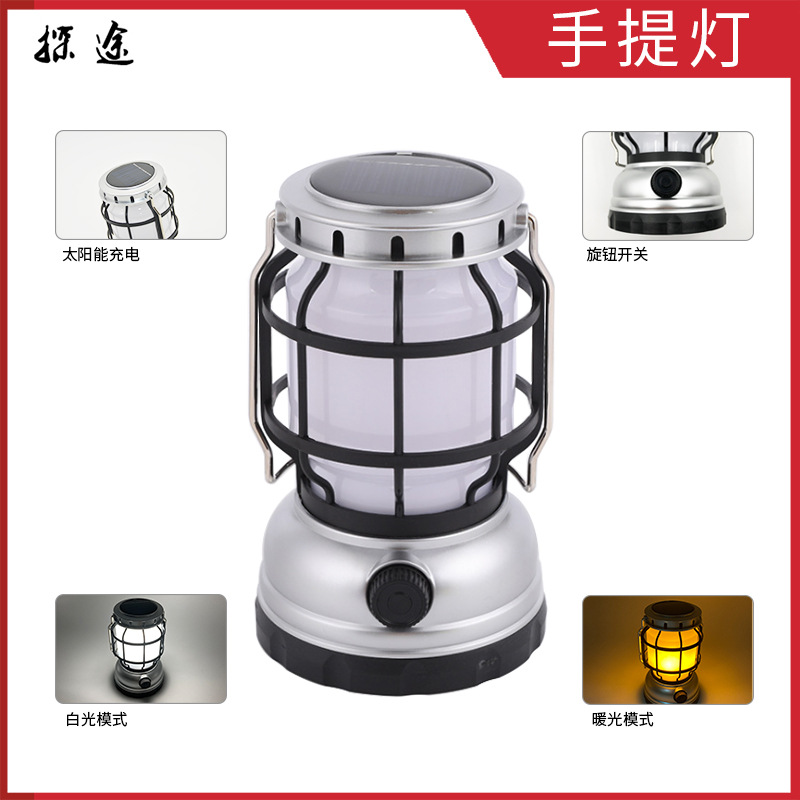 Cross-border lampu senter luar ruangan, cahaya darurat portabel multifungsi luar ruangan pengisian tenaga surya berkemah USB pencahayaan