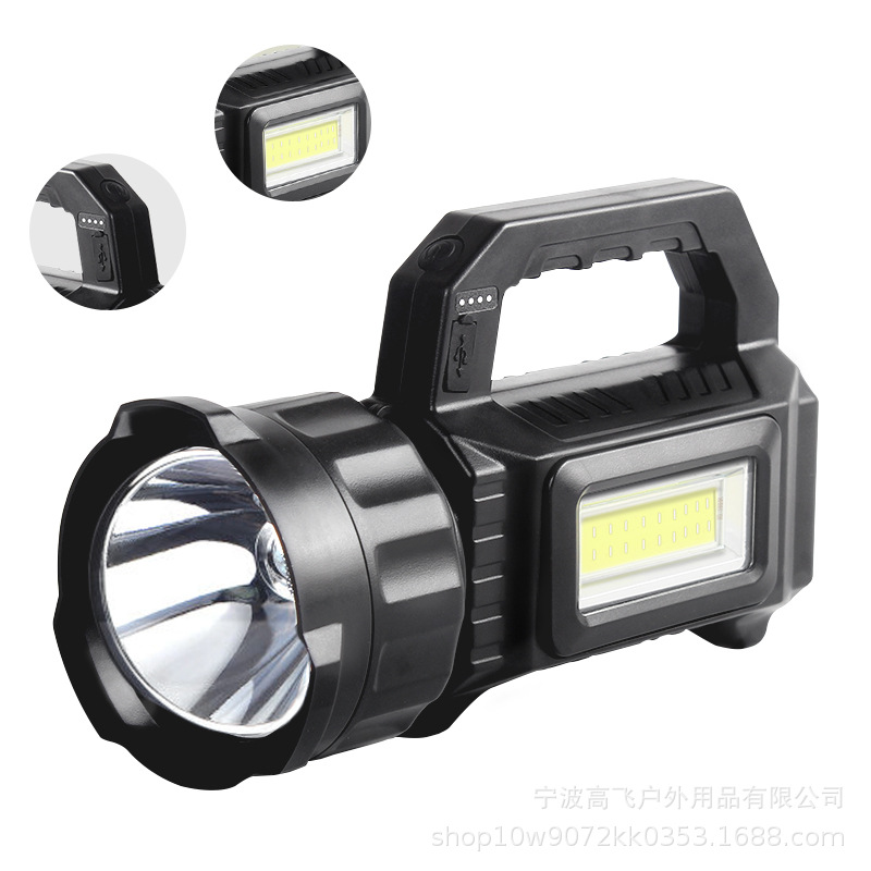 Senter COB baru lintas batas, pengisian daya usb dengan lampu samping, Senter led multifungsi plastik portabel