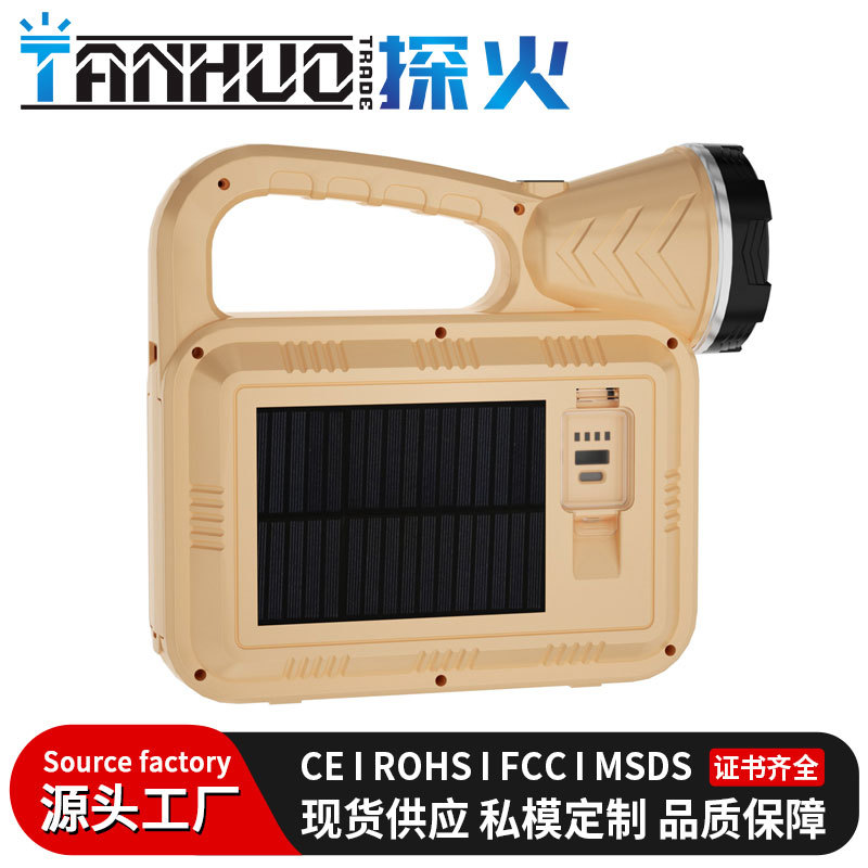 Lampu senter portabel multifungsi, cahaya senter luar ruangan LED isi ulang tenaga surya portabel